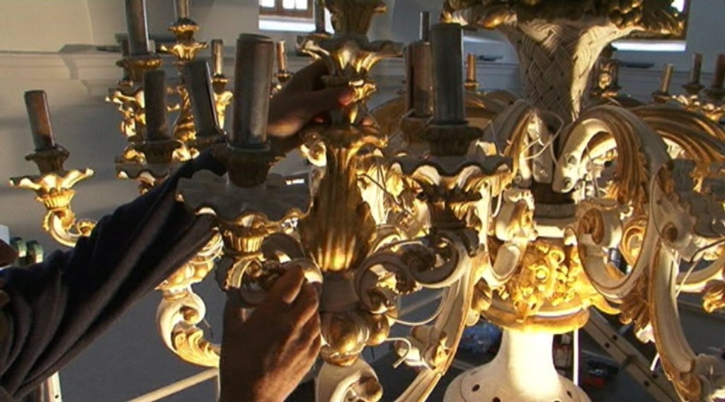 Luster bude mať celkovo 110 svietidiel. Kvôli bezpečnosti nebudú horieť sviečka, ale nahradila ich LED svetlá. Dvakrát meraj a raz rež. Predtým ako začali luster montovať istenie si vyskúšali na vlastnej koži. Na reštaurovanie použili asi kilogram 24-karátového zlata.