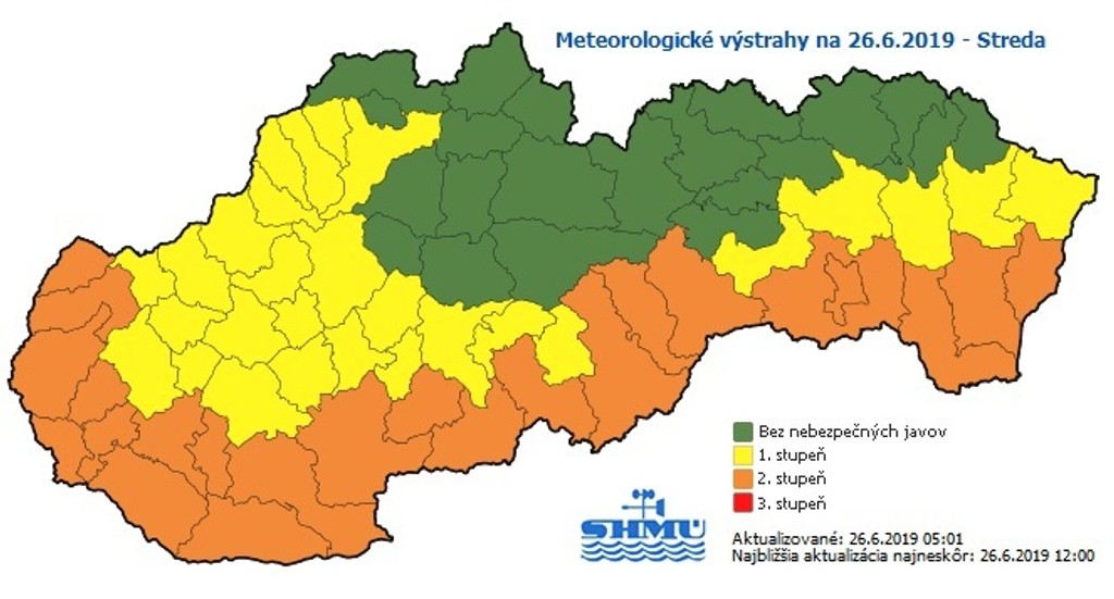 Výstraha 2. stupňa pred teplotami platí pre okresy: Skalica, Senica, Malacky, Pezinok, Bratislava, Senec, Dunajská Streda, Galanta, Šaľa, Komárno, Nové Zámky, Levice, Krupina, Veľký Krtíš, Lučenec, Rimavská Sobota, Revúca, Rožňava, Košice, Trebišov, Michalovce a Sobrance.