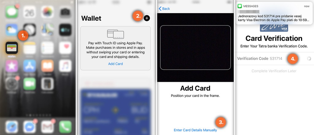 3. Ak už máte kartu priradenú k vášmu Apple ID, stačí vám zadať iba bezpečnostný kód. Ak chcete pridať novú kartu, vyberte si z možností vašu banku. Údaje o karte buď nasnímajte fotoaparátom alebo ich pridajte manuálne