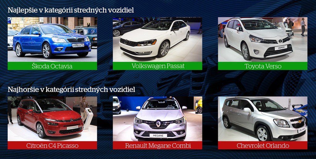 Veľké zastúpenie majú na Slovensku rodinné vozy strednej triedy. „Najnižší percentuálny pokles ceny po piatich rokoch užívania majú v tejto kategórii autá ako Škoda Octavia, Volkswagen Passat a Toyota Verso.