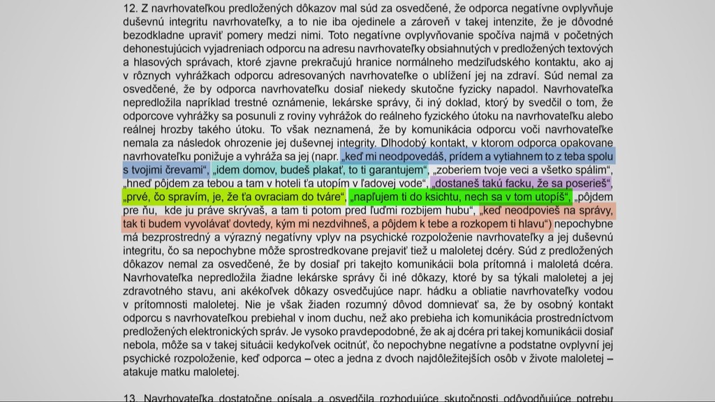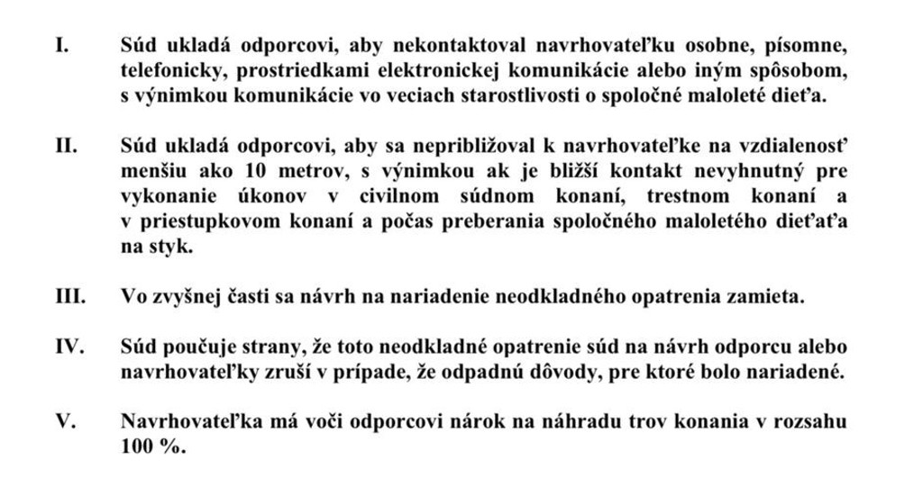 „To však neznamená, že by komunikácia odporcu voči navrhovateľke nemala za následok ohrozenie jej duševnej integrity,“ píše sa však v uznesení súdu.