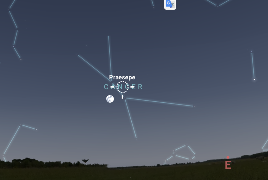 Hviezdokopa je viditeľná aj voľným okom a bude sa nachádzať nad Mesiacom pri splne – tesne vpravo. Mesiac treba hľadať v blízkosti súhvezdia Raka.