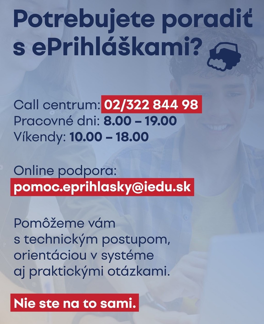 Ministerstvo vyzvalo základné školy na spoluprácu pri informovaní rodičov o elektronickom podávaní prihlášok prostredníctvom stránky www.eprihlasky.iedu.sk. Aj keď elektronické odosielanie prihlášok z externých systémov do systému ePrihlášky je možné, rezort odporúča rodičom žiakov končiacich ročníkov základných škôl, aby pri podávaní prihlášok na stredné školy v termíne od 8. do 20. februára využili oficiálny portál ePrihlášky.