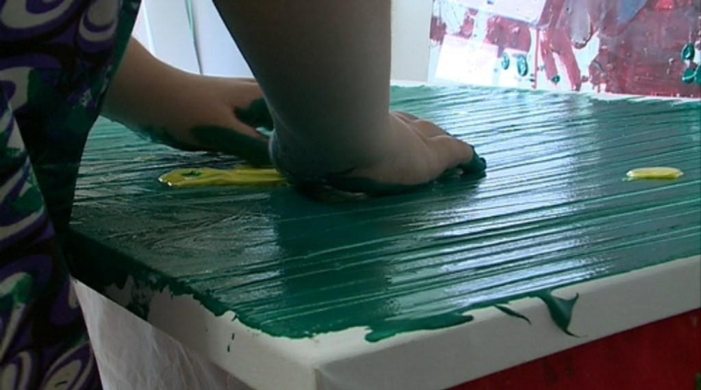 Trinásťročná Júlia navštevuje školu pre autistov v Prešove, no najviac času trávi vo svojom ateliéri. Neprekáža jej, že je pri maľovaní celá od farby. Štetce totiž vôbec nepoužíva, maľuje len rukami.