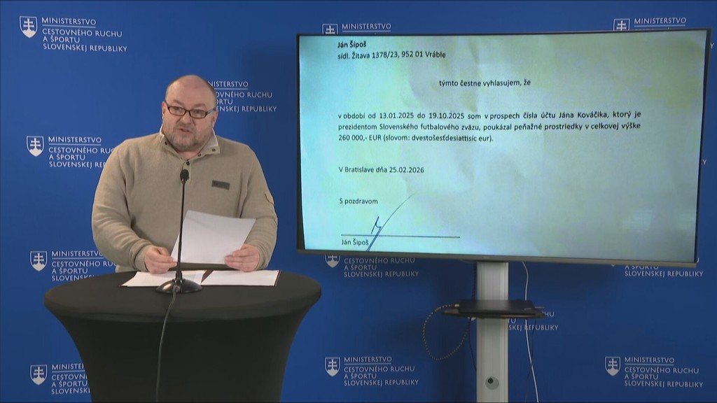 Minister cestovného ruchu a športu Rudolf Huliak vo štvrtok (26. 2.) uviedol, že prezident Slovenského futbalového zväzu Ján Kováčik prijal v priebehu minulého roka platby od Jána Šípoša, konateľa firmy Best Press, platby v celkovej výške 260-tisíc eur.