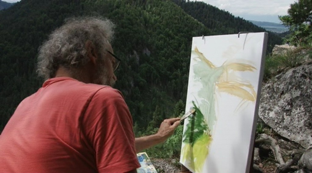 Maľovanie na kraji útesu pre nich vymysleli ochranári z Národného parku Slovenský raj. „Po prvýkrát maľujem na takom krásnom mieste - v horách. Tam, kde žijem ja, je tajga. Musím si dávať pozor, pretože ak urobím ešte krok, too bude môj posledný rozhovor v živote," hovorí maliar Josif Edkin.