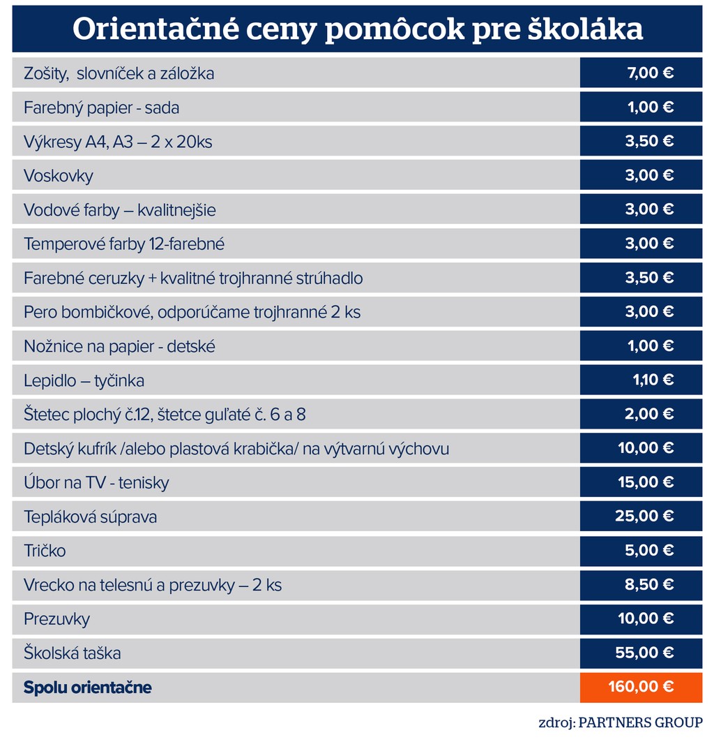 Hoci sú prázdniny iba v polovici, rodičia prváčikov musia myslieť dopredu. Veď zošity, perá, výkresy, ale aj úbor na telocvik či farbičky na výtvarnú, zoberú z rozpočtu aj niekoľko stoviek eur.