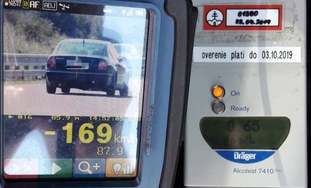 "Vodiča VW Passat policajti namerali na ceste I/9 v smere od Prievidze do Novák. V mieste, kde je povolená rýchlosť jazdy 90 kilometrov za hodinu, jazdil rýchlosťou 169 kilometrov za hodinu. Vodiča zastavili a pri cestnej kontrole ho podrobili dychovej skúške, pričom nafúkal 0,65 mg/l (1,35 promile) alkoholu v dychu," uviedla Antalová.