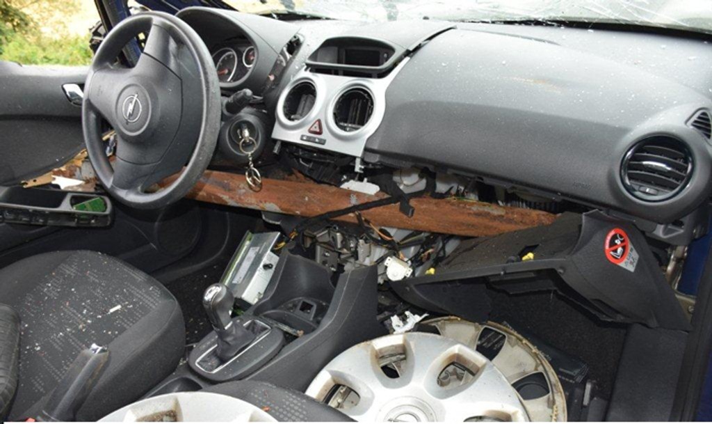 Pri vniknutí sa kovová tyč iba mierne zachytila nohy vodiča. Bolo veľkým šťastím, že ho a jeho spolujazdkyňu, ktorá sedela na prednom sedadle vedľa neho, neprepichla.