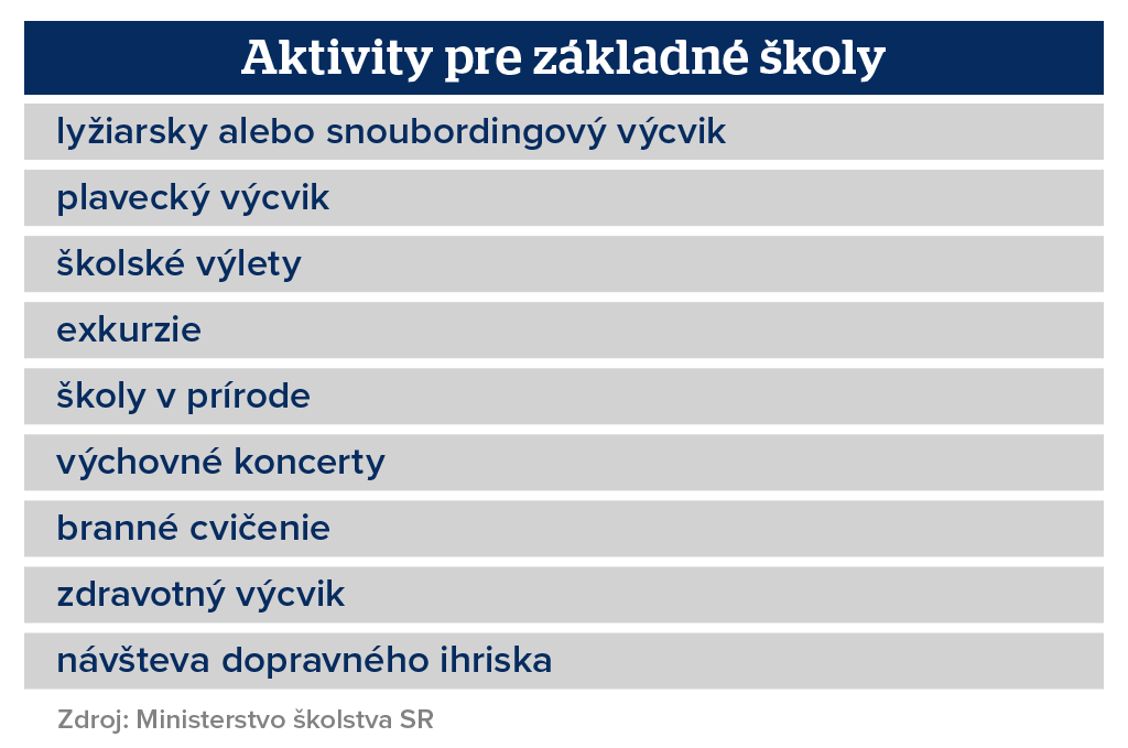 Základné školy môžu organizovať napríklad lyžiarsky alebo snoubordingový výcvik.