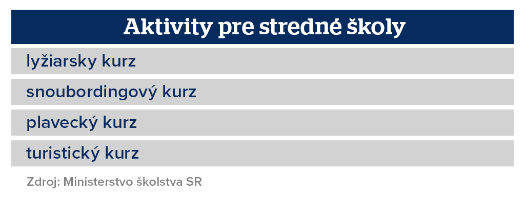 Športovo-vzdelávacie aktivity môžu organizovať aj stredné školy.