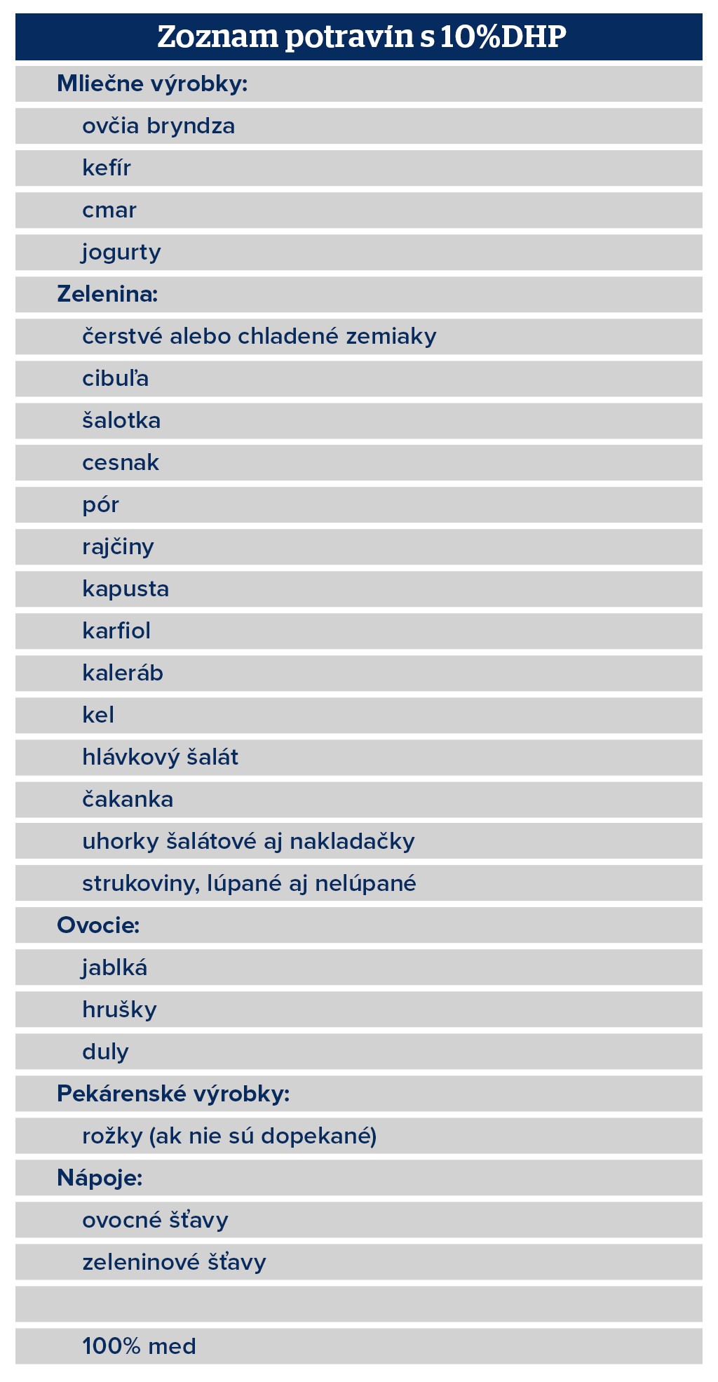 Na vybrané potraviny sa zníži daň z pridanej hodnoty DPH na 10 %. Zahŕňa to napríklad zdravé mliečne výrobky, prevažnú časť ovocia a zeleniny mierneho pásma, med či chlieb.