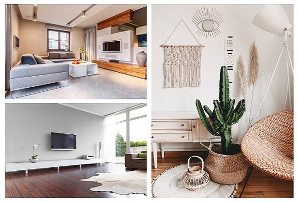 Najviac rozšírený je moderný štýl. Ten má prevažne čisté a jednoduché línie a neutrálne farby ako základ. Materiály sú prírodné, ale aj umelé a častá je kombinácia kovu a skla. Interiér dotvárajú textílie a obrazy, ale zaujímavý detail dokážu vniesť aj moderné tapety.