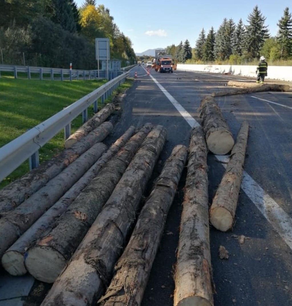 Na Liptove sa prevrátil kamión s drevom. Narazil do stredových zvodidiel pri odpočívadle na D1 medzi Ružomberkom a Liptovským MIkulášom.