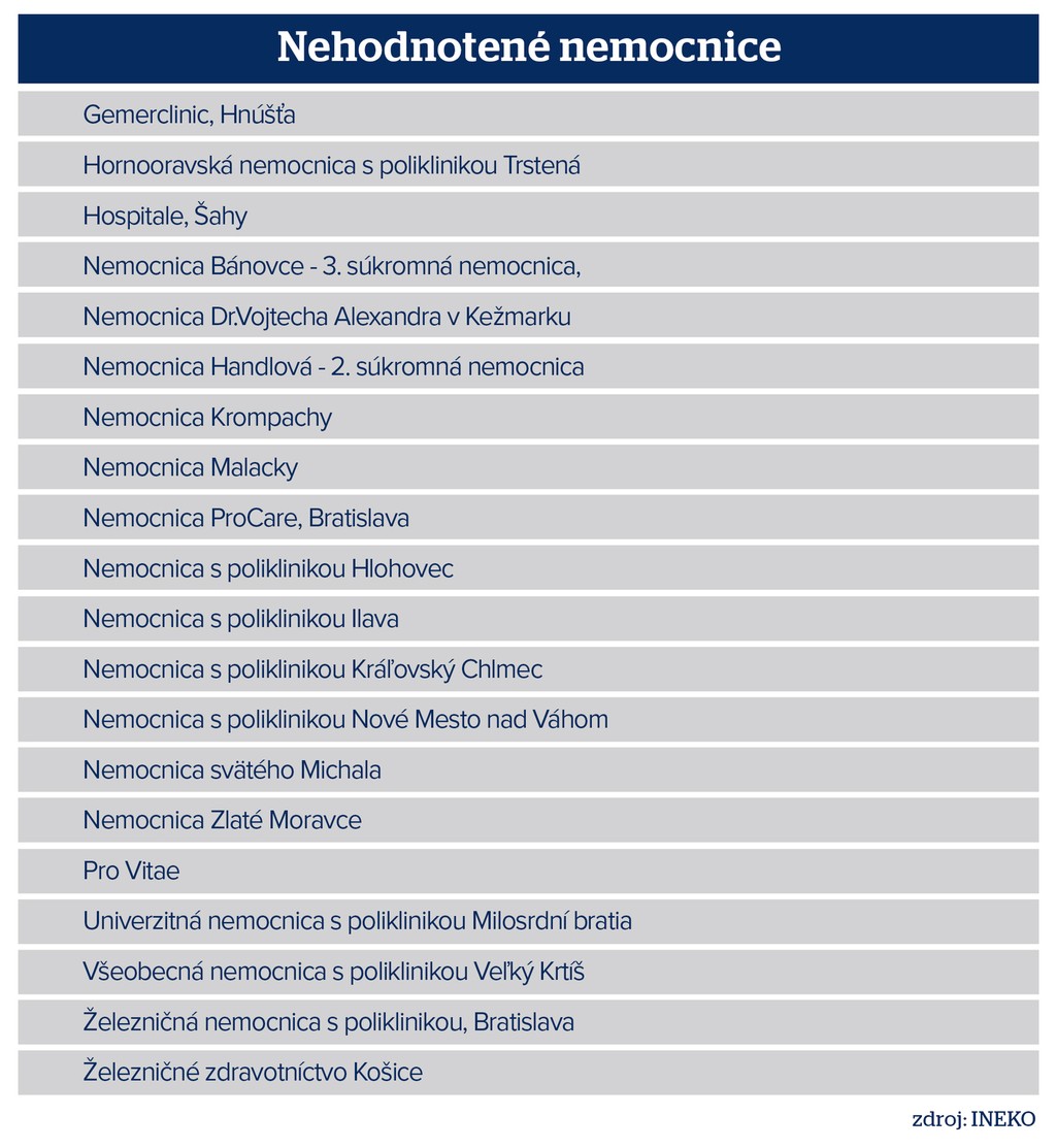 Vyplýva to z hodnotenia zdravotníckych zariadení, ktoré v pondelok zverejnil Inštitút pre ekonomické a sociálne reformy (INEKO).