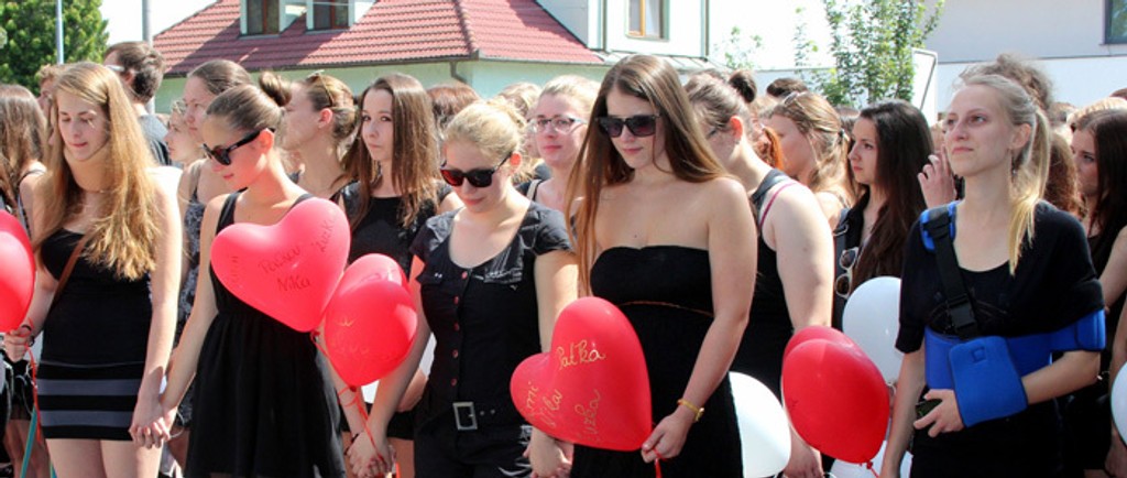 Ponorení do smútku dali posledné zbohom Patrícii Dejczövej (†17), Nikole Hanusovej (†19), Paulína Mancovej (†18), Zuzana Nemčicovej (†18) a vypustili na ich pamiatku balóniky do neba.