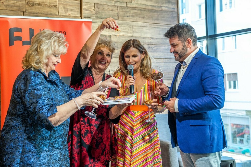 Gizka Oňová vo štvrtok pokrstila svoje novú knihu receptov s názvom Gizka radí: varte doma. Krstnými rodičmi jej tretej publikácie, v ktorej je 113 tradičných receptov, sa stali Katka Brychtová, Nora Beňačková a Noro Meszároš a krstilo sa badiánom, citrónovou a pomarančovou kôrou.
