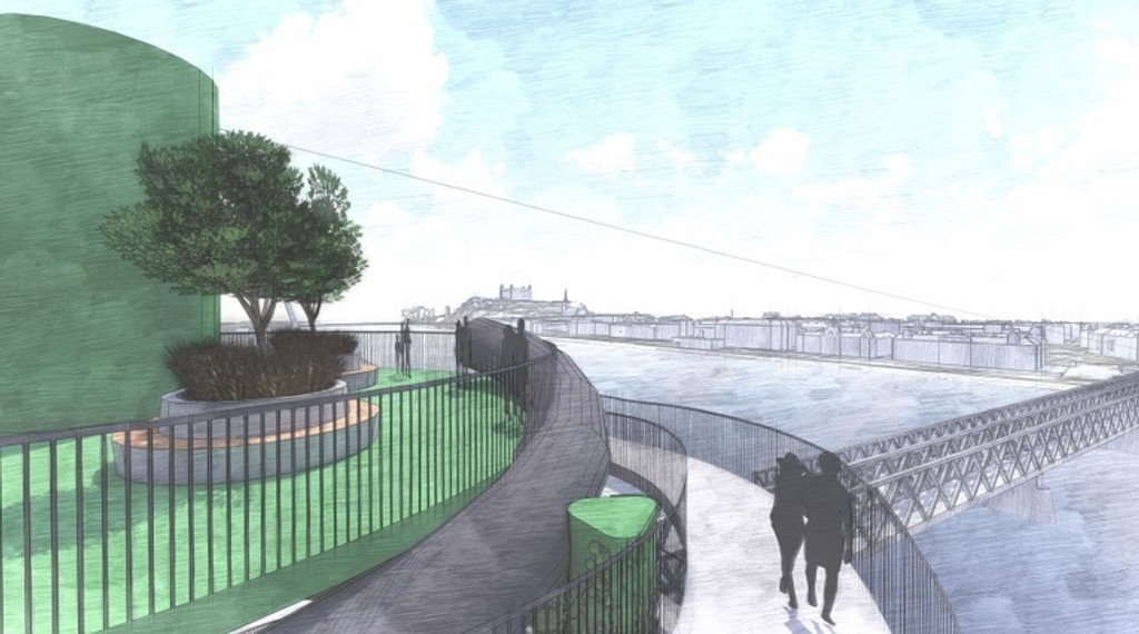 Na petržalskom brehu pri Starom moste chce investor postaviť vyhliadkovú vežu s výškou 45 metrov. "Bude charakteristická plynulým bezbariérovým výstupom až na vrchol, prístupná každej vekovej kategórii. Z vrcholu bude vyhliadka na mesto po oboch stranách Dunaja," píše v štúdií investor. Po obvode zábradlia majú byť formou galérie prezentované pamiatky Bratislavy, ale aj ostatné pamiatky v rámci Slovenska. "Súčasťou vyhliadky bude suchý tobogan, adrenalínový prechod, taktiež aj promenáda a posedenie nad korunami stromov," priblížil investor.