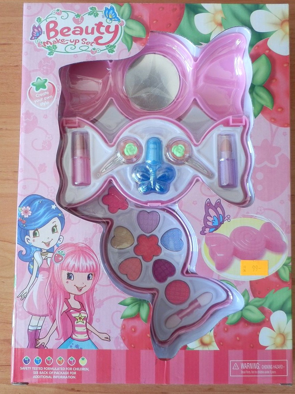 V prípade kozmetickej súpravy pre deti ide o výrobok neznámej značky z Číny, výrobná dávka/typ: NO. 1157 A, Item No: 4975000, B:60, EAN: 8713149750003. Kozmetická súprava pre dievčatá má tvár cukríka a skladá sa z troch častí. Súprava obsahuje červeň na líca, očné tiene, lesk na pery, rúže či lak na nechty. Žltá farba očných tieňov v tomto výrobku obsahuje 220 mg.kg-1 olova a 1,95 mg.kg-1 niklu.