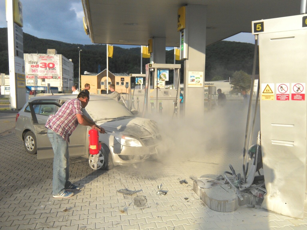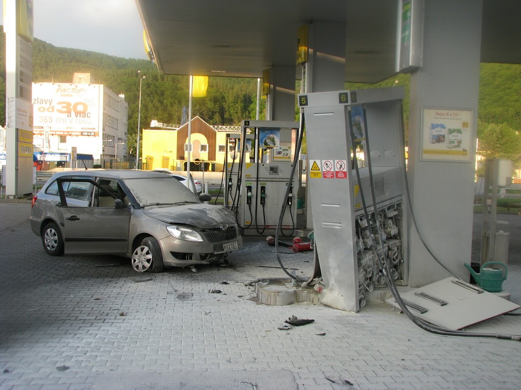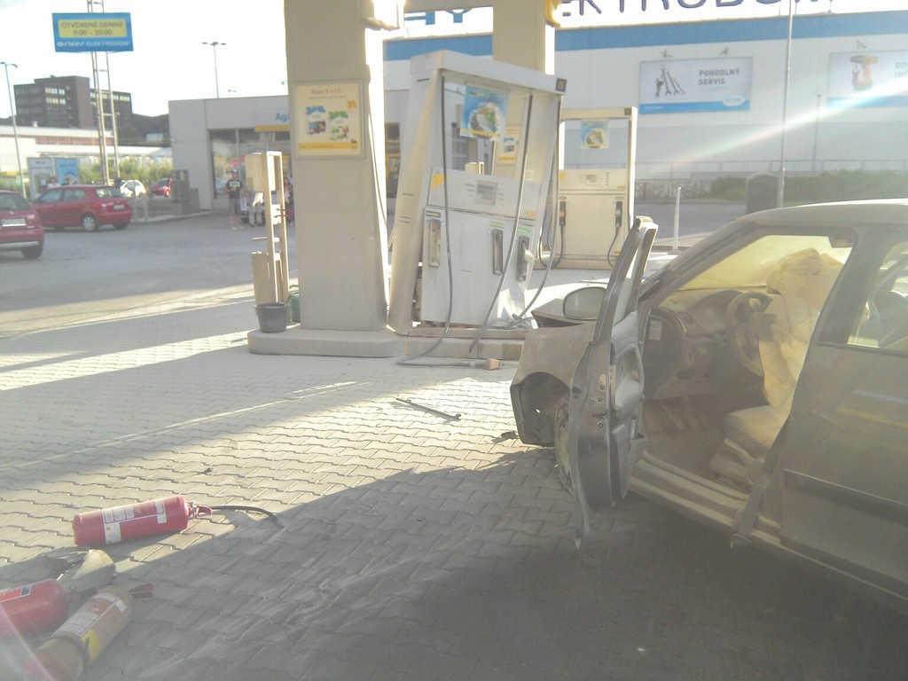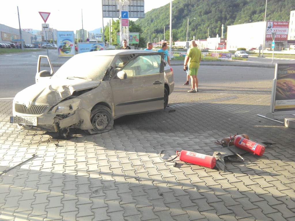 „Šofér Škody Fabia combi šiel veľkou rýchlosťou v ľavom pruhu, predbiehal kolónu a chcel odbočiť, no nezvládol riadenie, narazil do obrubníka a cez trávnik preletel do stojana na benzínovej pumpe. Ľudia stihli uskočiť nabok, tak sa našťastie nikomu nič nestalo. Začali hasiť a odtláčali auto preč od stojana. Celá nehoda sa odohrala pri hypermarkete Tesco okolo 19:30, kde sa už podobná nehoda stala," napísal čitateľ.