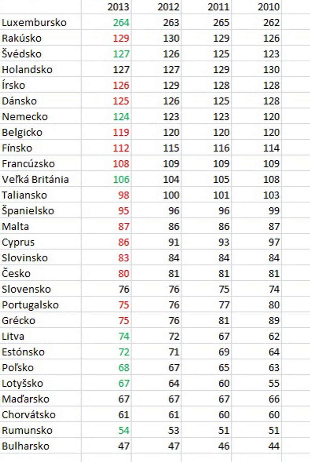 Na strane druhej, kým v roku 2012 sme sa dotiahli na Grécko a Portugalsko (respektíve oni sa ešte viac prepadli k nám), v roku 2013 sme niečo podobné nedosiahli.