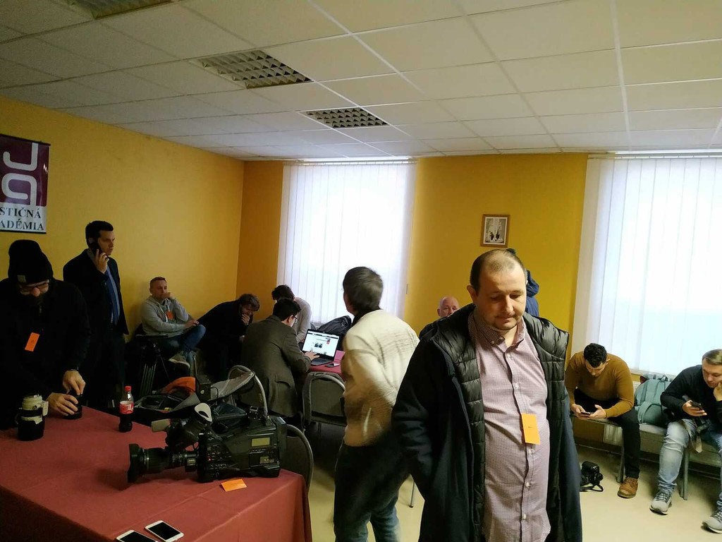 8.25 - Na pojednávanie nebola potrebné akreditácia novinárov, prišlo ich o mnoho menej ako na prejednanie obžaloby voči Kočnerovi a spol. Aj v tomto prípade však budovu strážia kukláči a psy.