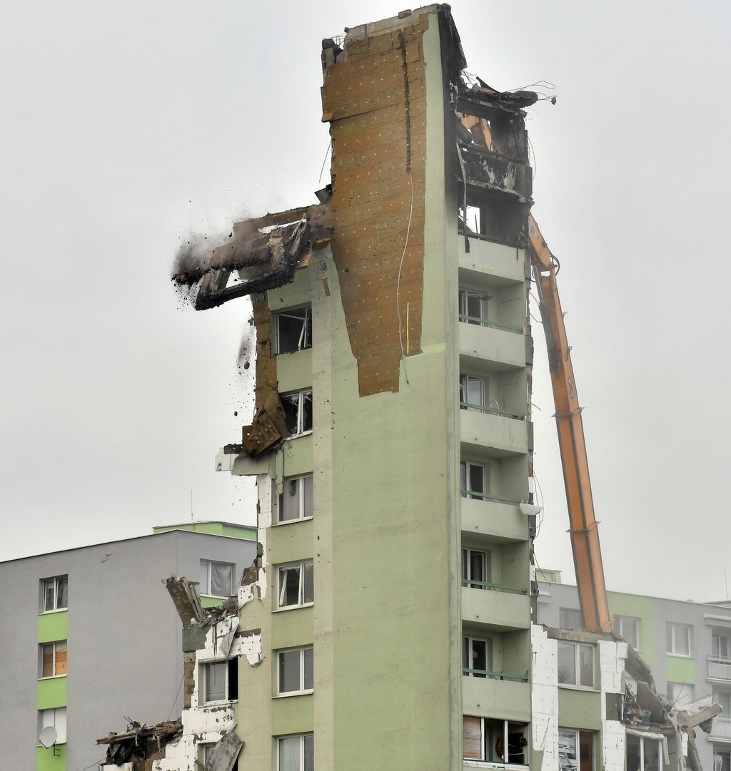 Českí špecialisti tak väčšiu časť bytovky zo solidarity zbúrali zdarma.