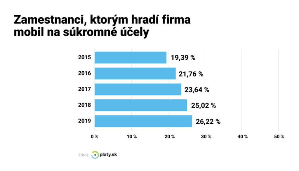 Kým pred piatimi rokmi platila firma iba každému piatemu zamestnancovi účet za mobil na súkromné účely, vlani tento benefit využíval každý štvrtý zamestnanec. Znamená to, že tento benefit pre zamestnancov má stúpajúci charakter.
