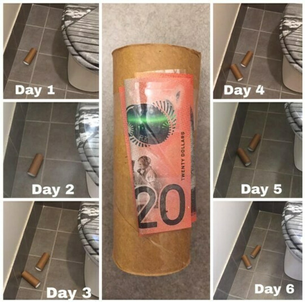 Tá totiž zo spodnej strany rúrok aj papiera prilepila bankovky, 20 a päť austrálskych dolárov, informuje The Sun. Všetci tak mali šancu prilepšiť si za svoju ochotu v prepočte o tri a 12 eur.