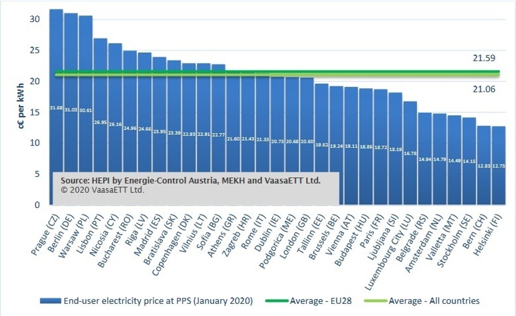 Podľa štandardu kúpnej sily, má najdrahšiu elektrinu na starom kontinente Praha, nasledujte Berlín a Varšava. Bratislave patrí deviata priečka, lacnejšie sú však napríklad ceny vo Viedni, Budapešti či Londýne.