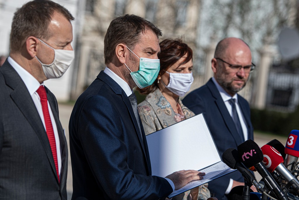 Predstavitelia strán a hnutí OĽaNO, Sme rodina, SaS a Za ľudí, ktorí sa dohodli na vytvorení spoločnej štvorkoalície s ústavnou väčšinou v parlamente, informovali prezidentku v sobotu (14. 3.) o dohode na prerozdelení jednotlivých rezortov v novej vláde. Matovič vtedy priblížil, že konkrétne mená ešte neboli dohodnuté pri dvoch alebo troch rezortoch, pretože na ne bolo viacero nominácií.
