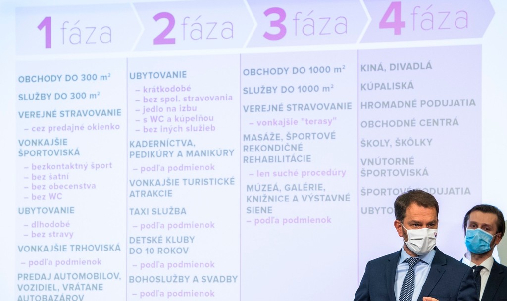 Slovensko spoznalo plán postupného naštartovania ekonomiky. Skladá sa zo štyroch fáz, pričom prvá je už v platnosti. Po týždni až dvoch bude krízový štáb prehodnocovať epidemiologickú situáciu v krajine a podľa nej sa rozhodne, či vstúpime do ďalšej fázy alebo urobíme krok späť.