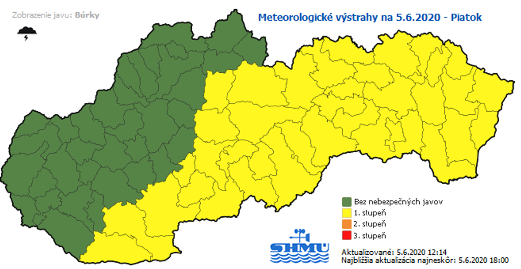 SHMÚ varuje aj pred intenzívnymi búrkami. Výstrahy platia pre Banskobystrický, Nitriansky, Košický, Prešovský a Žilinský kraj.