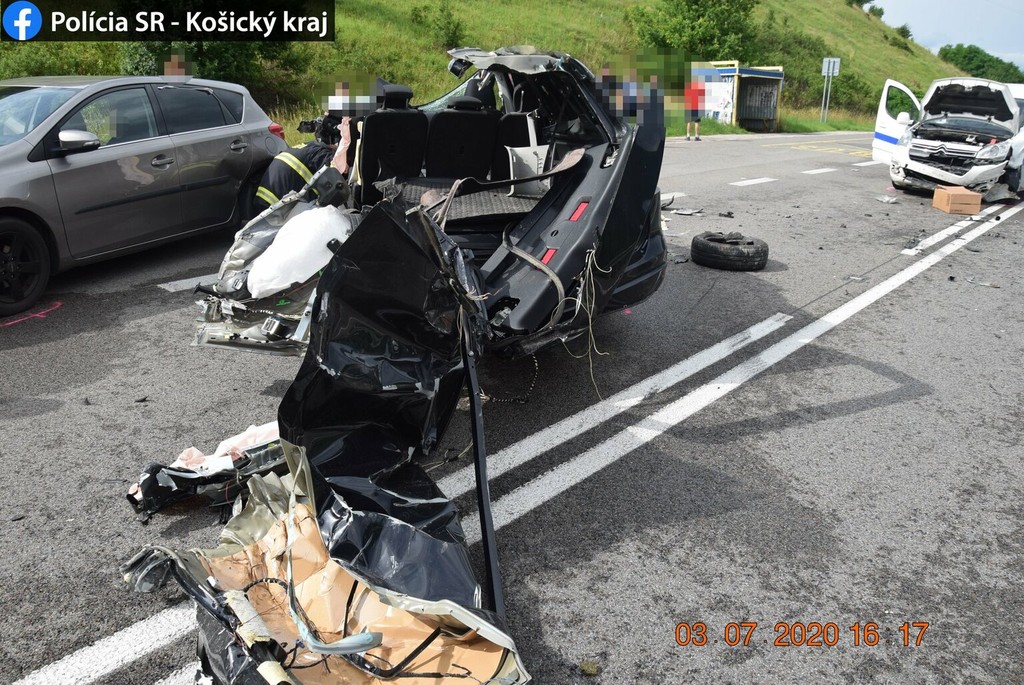Následne v protismere narazila do ľavej bočnej časti oproti idúceho vozidla značky Citröen Jumper, ktoré riadil 47-ročný vodič z Košíc. Vtedy už neovládateľné vozidlo Volkswagen Sharan sa podľa hovorcu na ceste dostalo do točivého šmyku a narazilo do ďalšieho oproti idúceho vozidla značky Peugeot Boxer, ktoré riadil 18-ročný vodič.