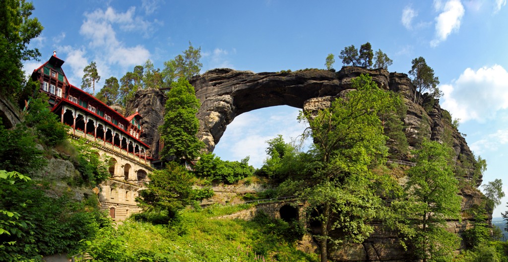 Ešte krajšia je Pravčická brána. Ide vraj o najväčšiu a najzaujímavejšiu prírodnú skalnú bránu v celej Európe. Na jej vrchol sa, žiaľ, nedá vyjsť, ale z väčšiny okolitých skál je na ňu krásny výhľad. Hneď pod ňou sa vypína malý zámok Sokolie hniezdo.