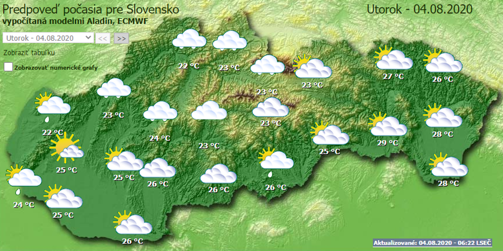 Utorok (4.8.) nás čaká veľká, miestami prechodne zmenšená oblačnosť. Nezabudnite si zobrať dáždnik, pretože na mnohých miestach spŕchne a na západnom a strednom Slovensku treba počítať aj s intenzívnymi búrkami.