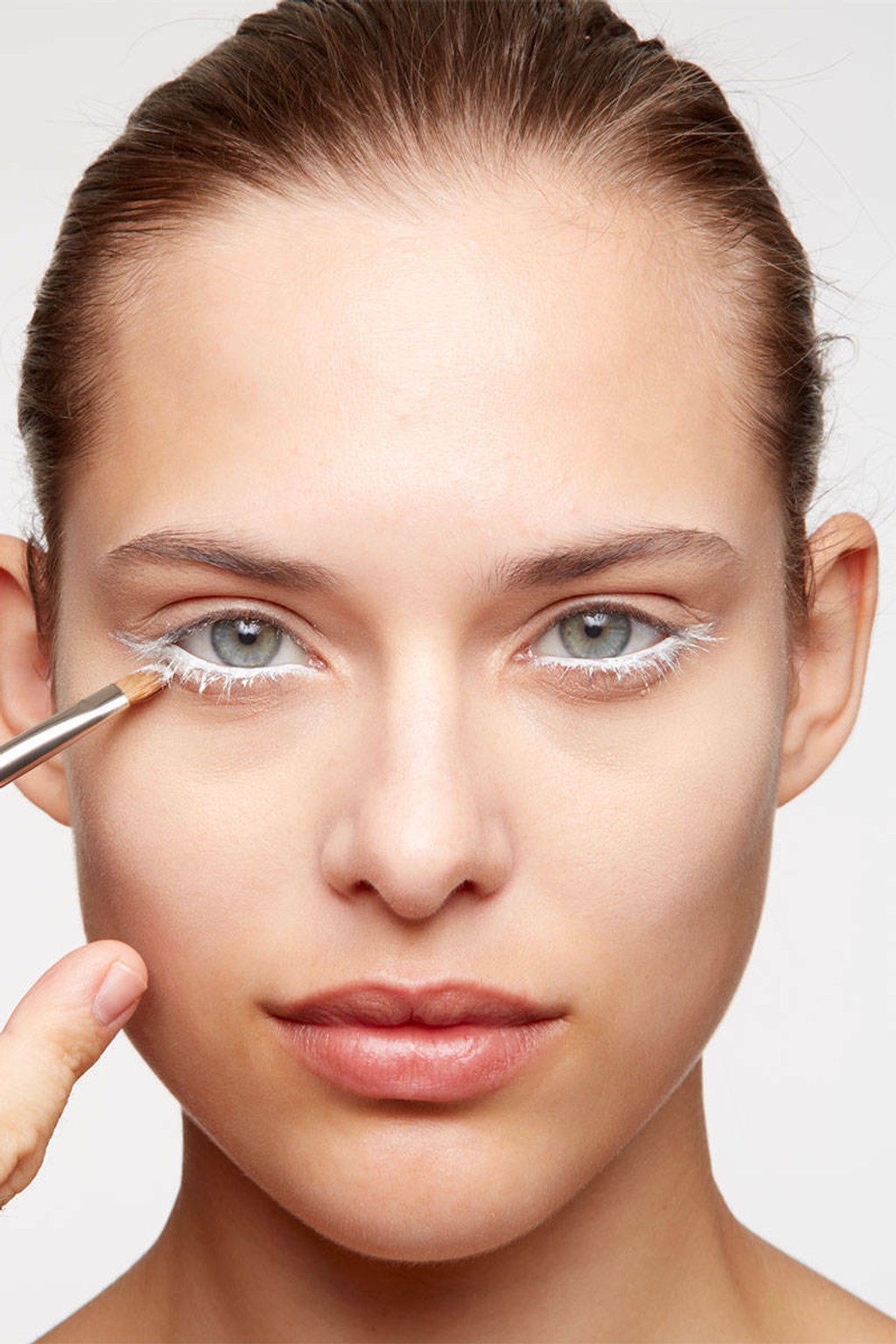 3. Pre dokonalé rozjasnenie aplikujte na spodnú líniu rias biely tieň (gél) na oči, aj do vnútorného oka. Upravte štetcom.