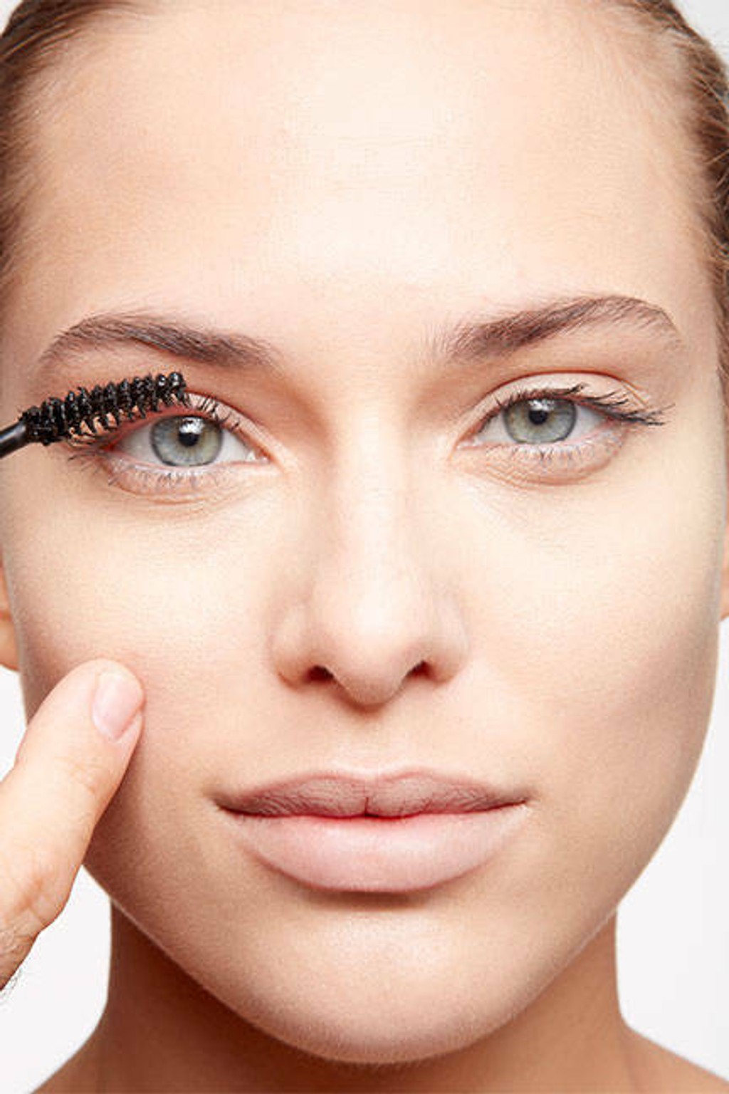 4. Následne naneste na vrchné aj spodné riady maskaru. Stačí jemná vrstva, aby ste pozdvihli vrchné riasy a na dolných zamaskovali biely gél, ktorý ste predtým aplikovali.