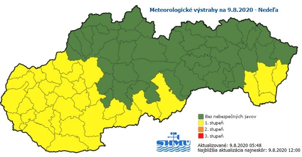 Informuje o tom Slovenský hydrometeorologický ústav (SHMÚ) na svojom webe s tým, že v tejto súvislosti vydal výstrahu prvého stupňa pred vysokými teplotami.