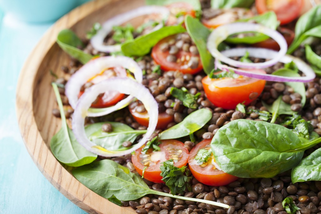 Postup: Červenú šošovicu nasypte do vriacej vody s lyžicou jablčného octu a varte asi sedem minút. Následne ju scedíte a dáte vychladnúť. Zmiešajte rajčiny, cibuľu, špenát, koriander a studenú šošovicu. Dijónsku horčicu, javorový sirup, šťavu z citróna, soľ, korenie a olivový olej vyšľahajte metličkou a zľahka vmiešajte do šalátu.