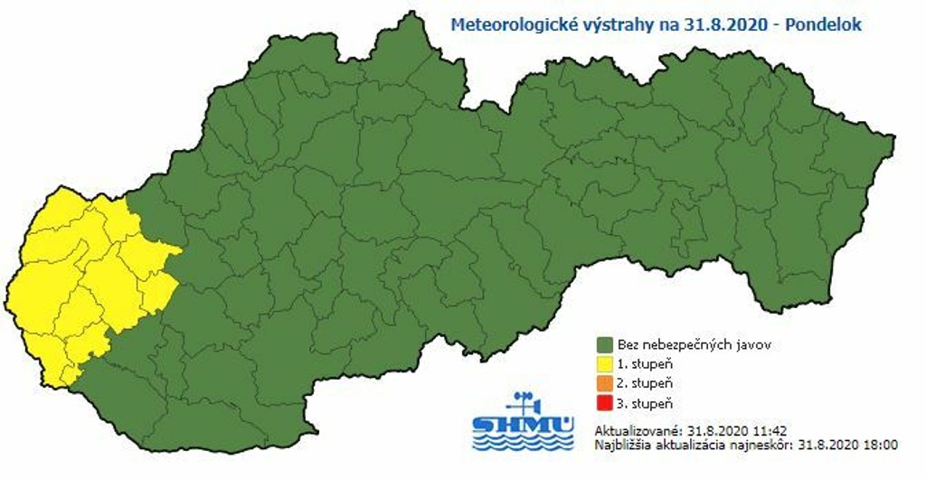 Slovenský hydrometeorologický ústav (SHMÚ) vydal pre okresy Trnavského a Bratislavského kraja výstrahu pred dažďom 1. stupňa. Výstraha platí od 21.00 h do polnoci.
