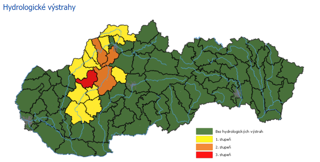 Povodne z trvalého dažďa či prívalové povodne podľa SHMÚ aktuálne hrozia aj v ďalších okresoch na Orave, Liptove, Kysuciach, dolnej i hornej Nitre, Žitave i na strednom a hornom Považí, kde platí výstraha 1. stupňa. Vývoj hydrologickej situácie bude SHMÚ priebežne aktualizovať.