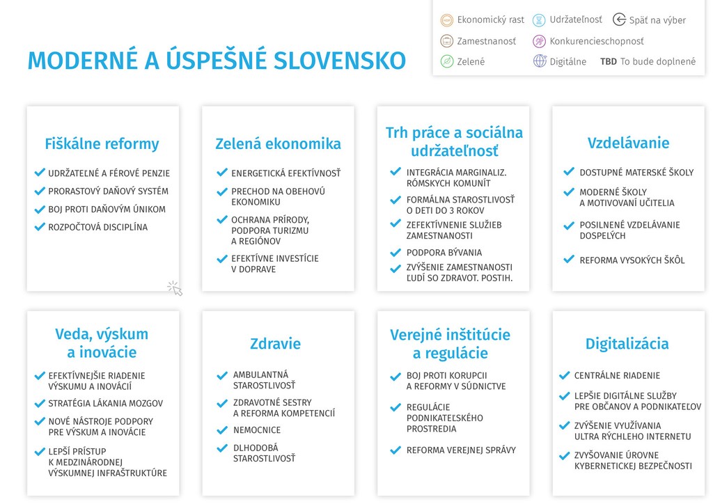 plánu obnovy, ktorý čerpá z dokumentu Moderné a úspešné Slovensko.