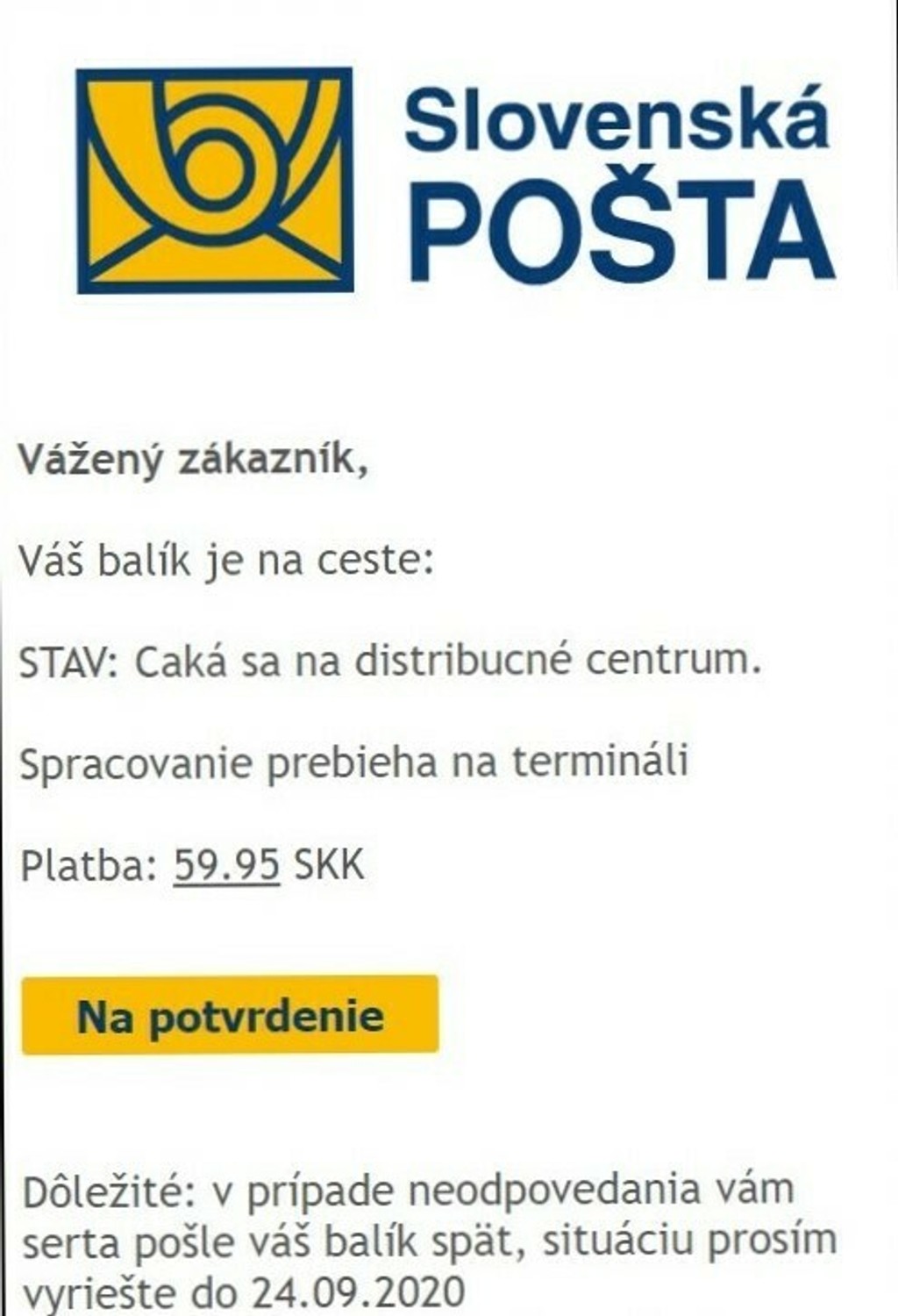„Odosielateľom týchto mailov nie je Slovenská pošta, a preto by klienti nemali na takéto maily reagovať. Ide o podvod, kde je zneužité meno Slovenskej pošty, ktorá sa už obrátila na orgány činné v trestnom konaní," vysvetlila v reakcii pre médiá.