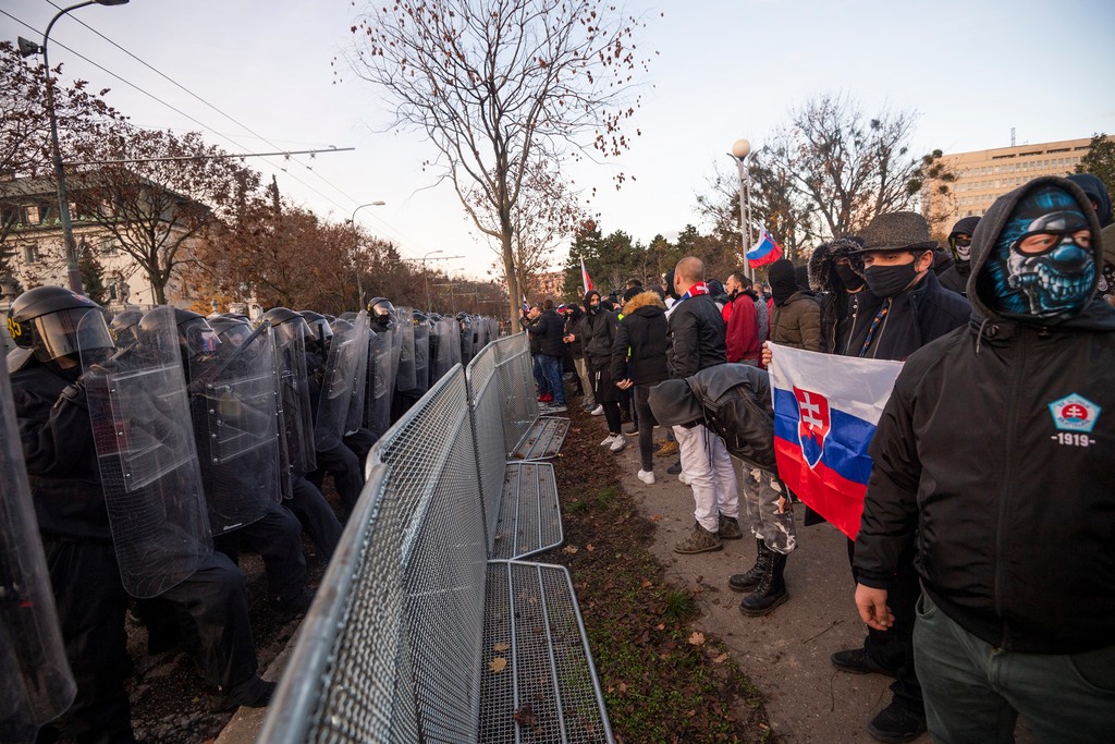 Okolo 15.00 h sa začali stretávať na Hlavnej stanici v Bratislave futbaloví chuligáni, ktorí sa presunuli pred Úrad vlády. Mnohí mali na hlavách kukly a pili alkohol.