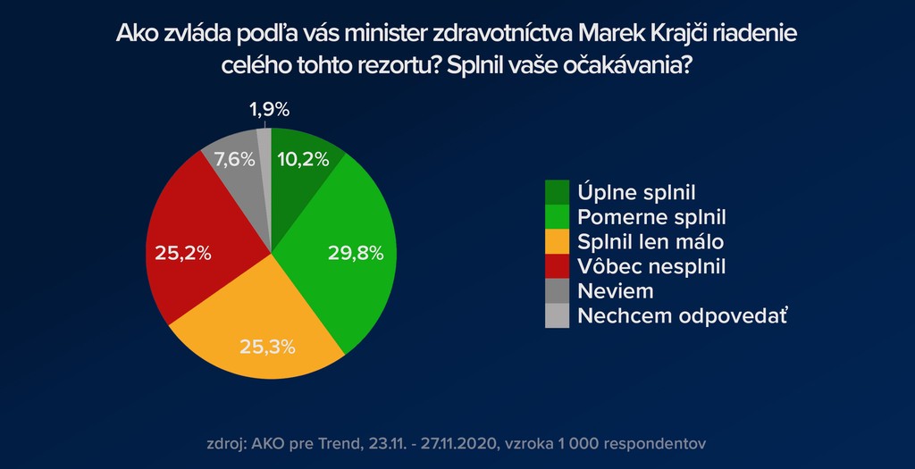 Respondenti odpovedali aj na to, či minister zdravotníctva Marek Krajčí zvláda riadenie zvereného rezortu. Až 40 percent odpovedalo, že ich očakávania splnil. Negatívny názor mala polovica respondentov.