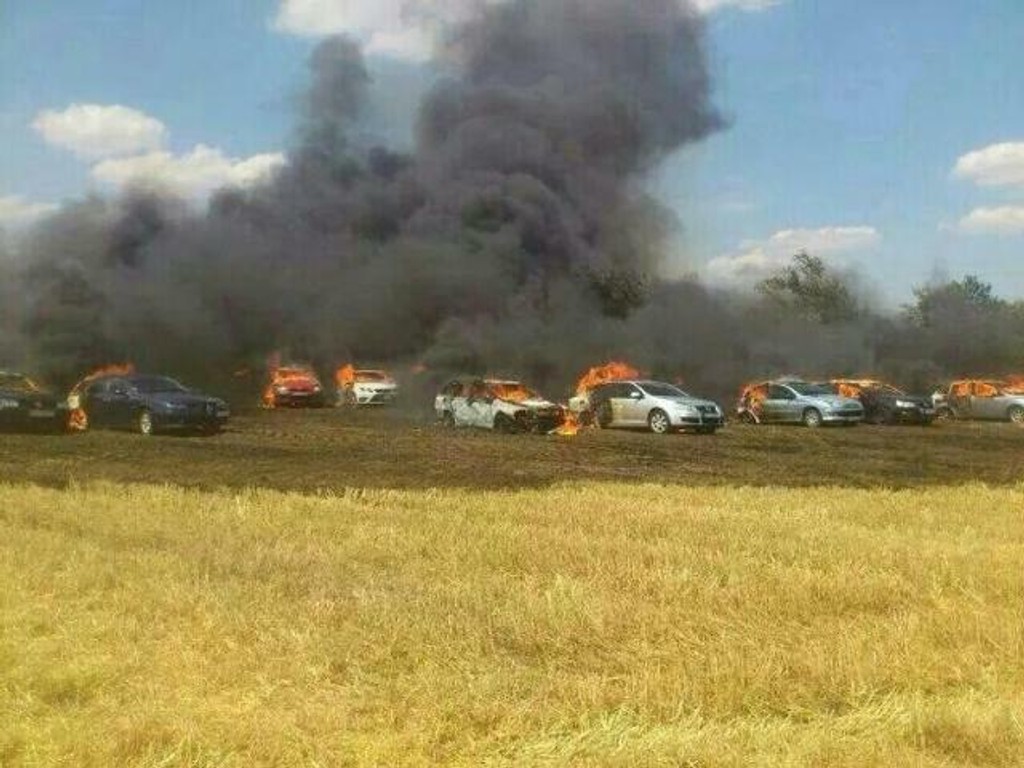 Pri požiari pri kúpalisku Vincov les zhorelo včera 40 áut a 16 oheň zničil. Ľudia sa kúpali a na parkovisku im zatiaľ horeli autá. Chytiť sa mali od horiaceho poľa. Presné príčiny zatiaľ nie sú jasné, ale privolaní experti včera predbežne vylúčili úmyselné konanie. Podľa prvotných odhadov majiteľov áut vznikla škoda za 400-tisíc eur.