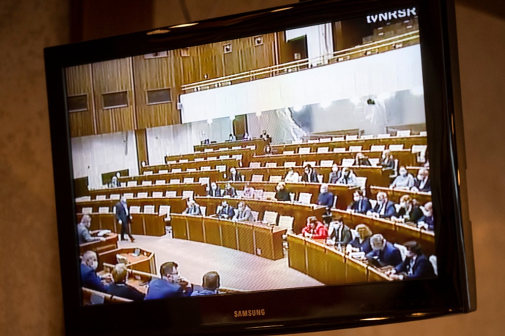 V súvislosti s ochorením koronavírusu museli upraviť rokovaciu sálu parlamentu. Oddelili časti igelitovou fóliou, aby pozitívni poslanci na COVID-19 neprišli do kontaktu so zdravými.