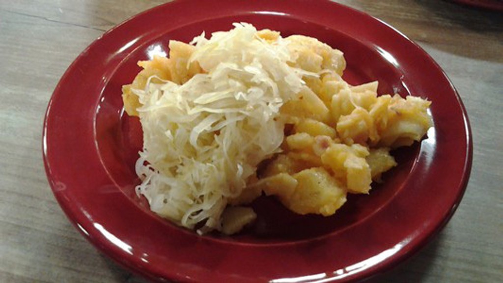 Cestoviny uvaríme v slanej vode a precedíme. Zemiaky uvaríme v šupe do mäkka, precedíme a necháme vychladnúť. Na tuku a údenej slanine podusíme nakrájanú cibuľu. Pridáme červenú papriku, primiešame uvarené cestoviny a na kolieska alebo kocky nakrájané zemiaky. Všetko dobre premiešame, osolíme, okoreníme a podávame s kyslou kapustou alebo zaváranou uhorkou.
