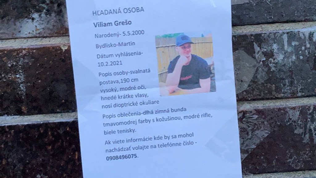 Rodina, priatelia, ako aj polícia už piaty deň pátrajú po 20-ročnom nezvestnom Viliamovi Grešovi z Martina. Naposledy ho videli v stredu (10. 2.) ráno 04.00 h v areáli ZŤS v Martine.